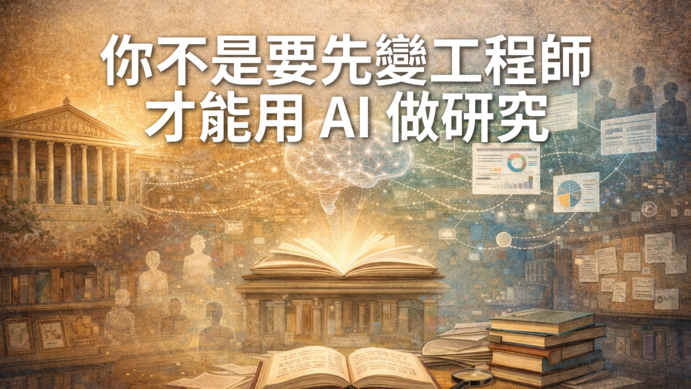 你不是要先變工程師,才能用 AI 做研究 ——一篇方法論實驗,怎麼看人文社會科學研究的人機分工 先承認一件事:很多人不是不想用 AI,而是不知道怎麼用才不會出問題 如果你是人文社會科學的師生,AI大爆發的這幾年大概都想過同一件事 - 文獻這麼多、資料這麼雜、進度有點卡,AI 如果真那麼厲害,應該能幫