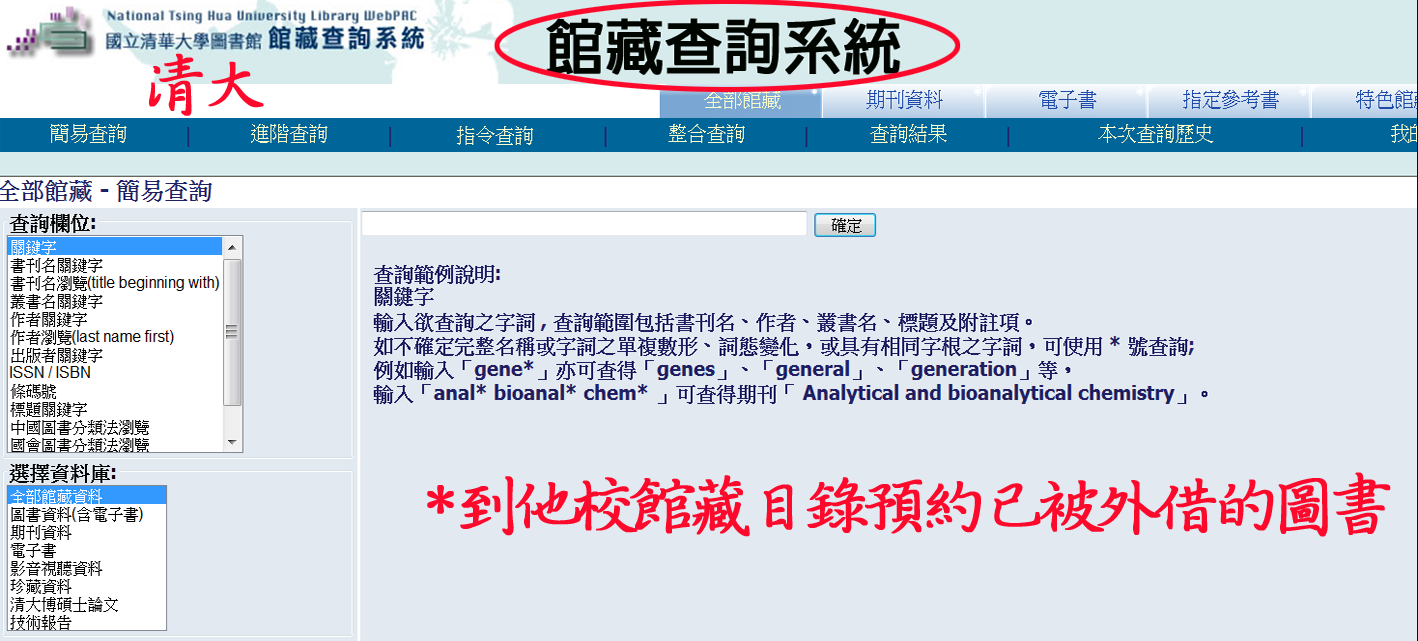 註:若第一次向清華大學和中央大學借書,須先簽署讀者權益聲明書(清華大學圖書館讀者權益聲明書;中央大學圖書館讀者權益確認書)